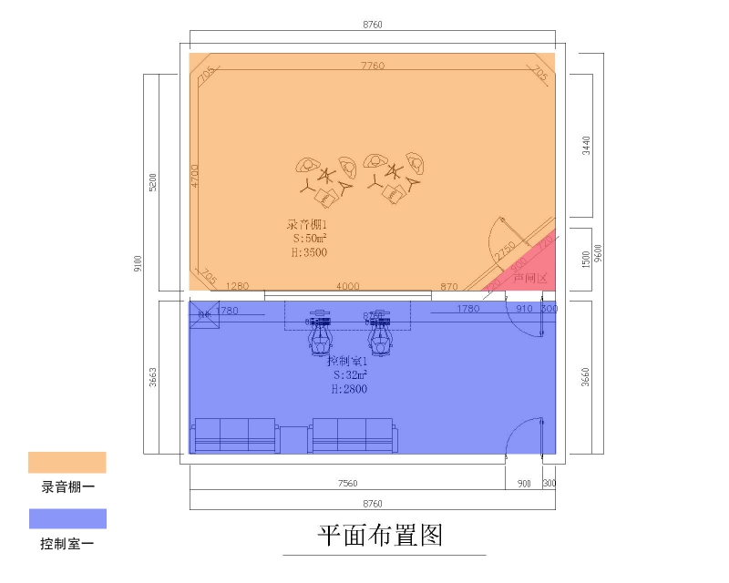 2) 声学设计必须具有处理62.5Hz---250Hz之间频段的吸声设计。(即125Hz左右频率的处理);
